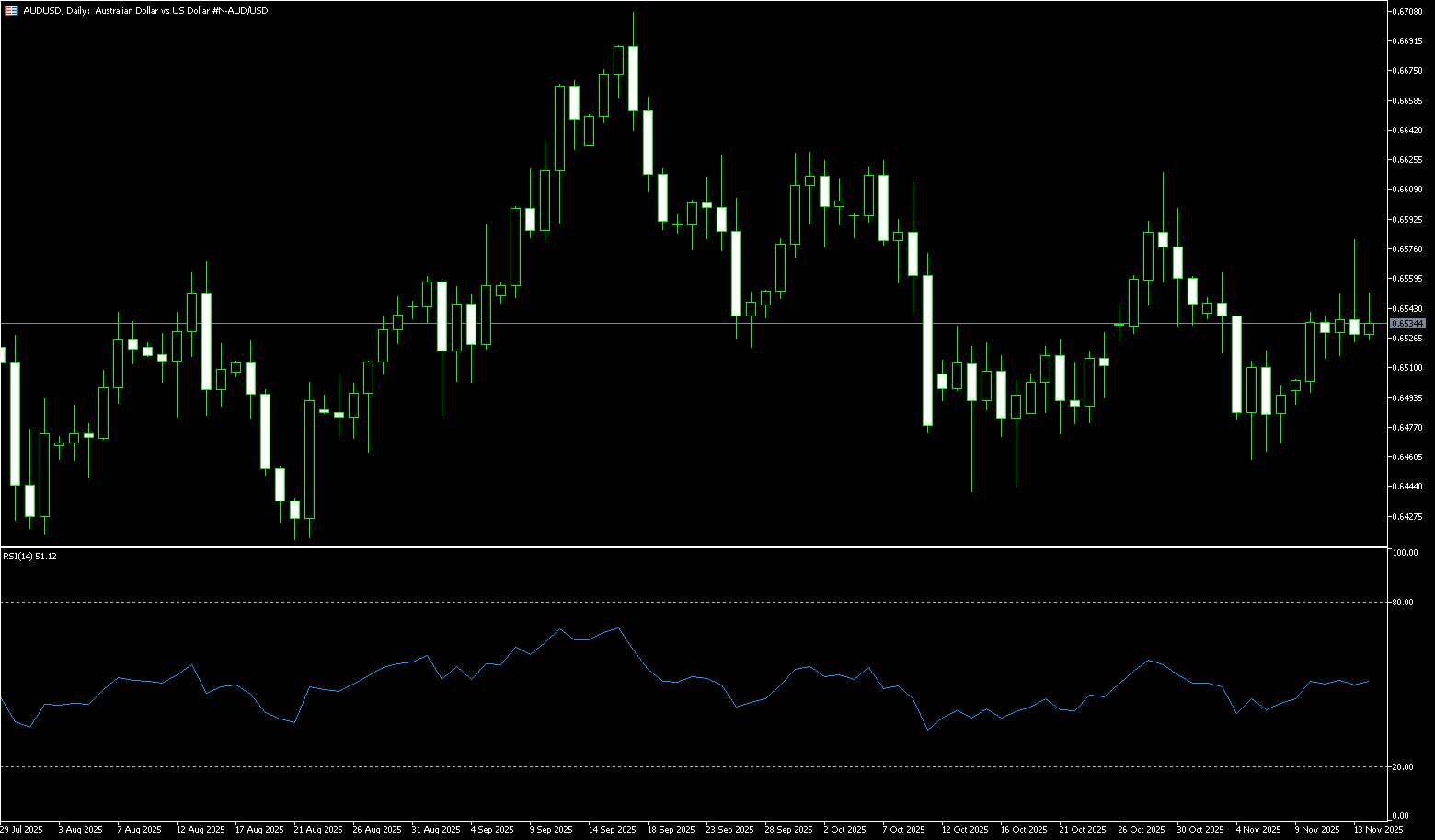 On Thursday, the Australian dollar/US dollar pair traded around 0.6530. Daily chart analysis shows the pair has rebounded to a near three-week high of 0.6540, indicating a neutral-to-bullish short-term trend. The pair has broken above the 20-day simple moving average at 0.6504 and the psychological level of 0.6500, suggesting strengthening upward momentum. The upside target is at 0.6533 (the 50-day simple moving average). A successful break above this moving average would support the AUD/USD pair testing 0.6580 (the November 13 high). Further gains would bring the pair closer to the psychological level of 0.6600. On the downside, the AUD/USD pair could retreat to the psychological level of 0.6500, aligning with the 10-day simple moving average at 0.6489. If the pair breaks below this overlapping support area, it may test immediate support near the 200-day simple moving average around 0.6462.