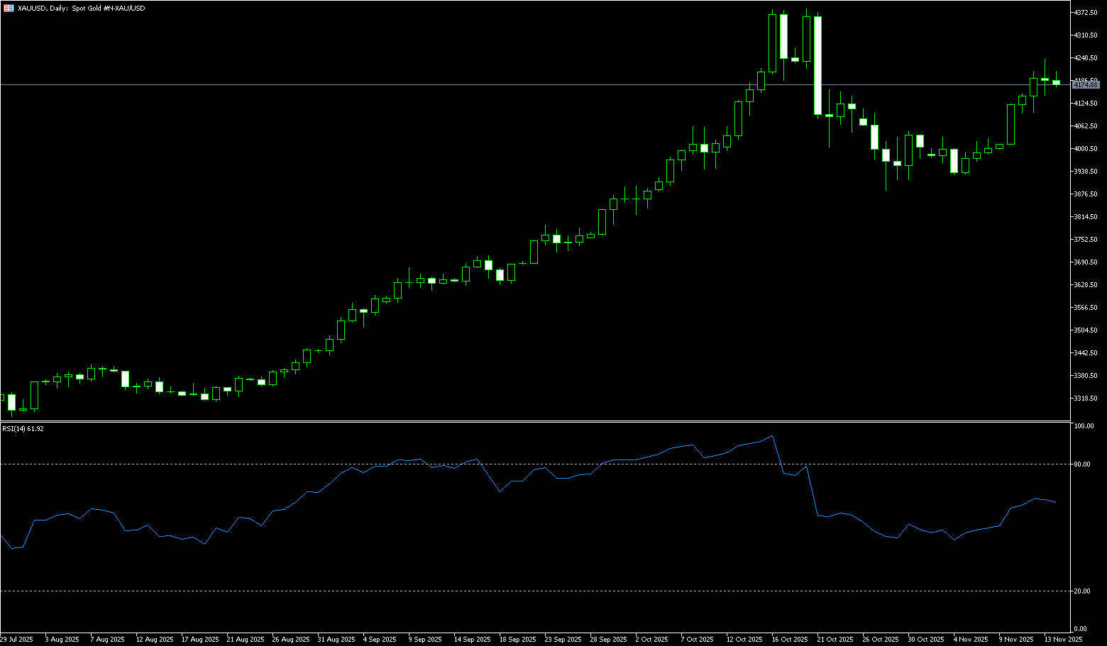 As the market continues to digest economic data and central bank policy signals, gold's safe-haven properties continue to attract investor attention. Any further declines are likely to find considerable support in the 4,132-4,130 area. A break below this level could see gold prices accelerate towards $4,114.50 (the 14-day simple moving average) and the $4,100 level. Further selling pressure will expose the next converging support levels, including the 20-day simple moving average on the daily chart at 4,076 and the upward trendline extending from late October, currently around 4,040. A decisive break below the latter could shift the short-term bias to bearish traders and drag gold prices towards the psychological level of $4,000. On the other hand, the 4,174-4,173 area, or the near two-week high reached on Wednesday, now appears to be a direct hurdle. A break above this level could see gold prices target a return to the psychological level of $4,200. A sustained strong break above the latter would pave the way for further momentum extension, testing the monthly swing high around the 4,245 area.