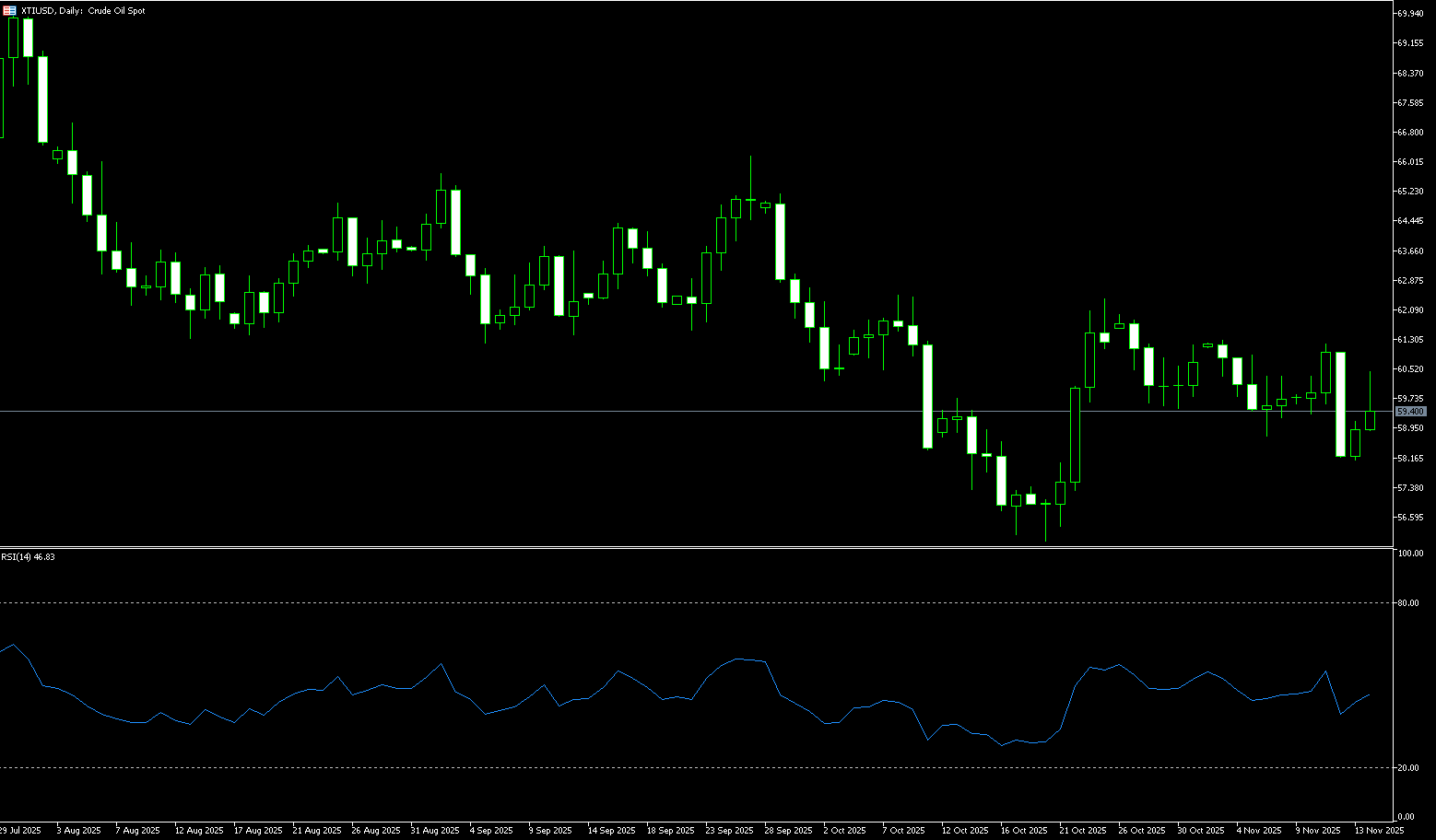 The current "stabilization at low levels" in WTI crude oil is more of a technical equilibrium than a trend reversal signal. The fundamentals remain significantly bearish: inventory rebuilding, weakening demand, and potential increases in Russian oil production are creating triple pressure; while a weaker dollar and expectations of interest rate cuts only provide marginal support. In the absence of sudden geopolitical conflicts or unexpected OPEC+ production cuts, oil prices are unlikely to break out of the $57-$60 range. We should be wary of potential amplification of volatility due to insufficient liquidity around the Thanksgiving holiday. If the $58 support level is breached, the next key test level may be the $55 area. Conversely, a firm hold above the psychological level of $60 and a break above the 50-day moving average around $60.22 are needed to alleviate short-term downward pressure. Currently, both technical and fundamental factors are weak, and the rebound lacks volume support, suggesting a continuation of the weak range-bound consolidation in the short term.