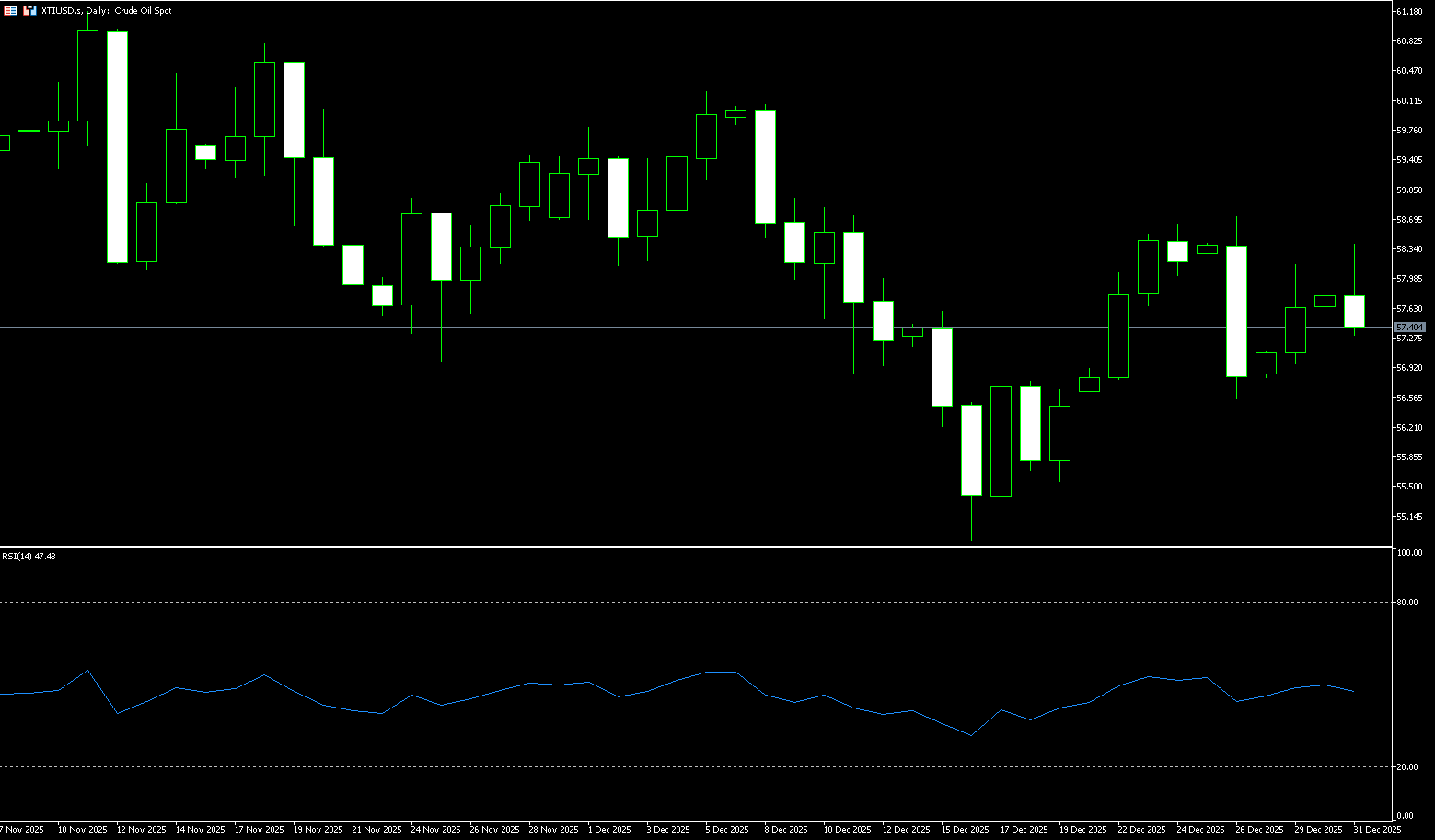 WTI crude oil futures fell to $57.30 per barrel on the last day of 2025, on track for the biggest annual drop since 2020, due to concerns about oversupply. Investors are now focused on the upcoming OPEC+ meeting, geopolitical developments, and the US inventory report. OPEC+ is expected to maintain its suspension of supply increases until the first quarter of 2026 at its meeting on Sunday. Geopolitical factors continue to support prices, including the US blockade of Venezuelan oil shipments, new instability in the Middle East, and continued uncertainty surrounding the Russia-Ukraine peace agreement. Meanwhile, the API estimated that US crude oil inventories increased by 1.7 million barrels last week, which, if confirmed later, would be the largest increase since mid-November. WTI crude oil is down more than 1% so far in December, on track for its fifth consecutive monthly decline, and has fallen nearly 20% for the year.