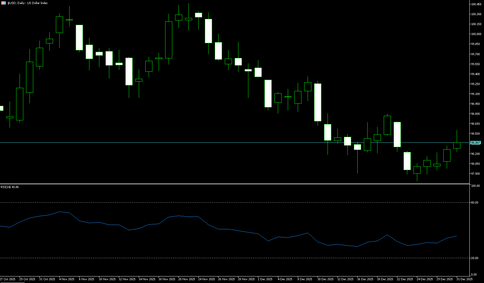 On the last trading day of 2025, the US dollar remained stable around 98.25, near its lowest level since early October, and on track for its biggest annual decline since 2017. The dollar has fallen 9.4% this year, reflecting a turbulent period that began with President Trump's chaotic rollout of tariffs. Expectations of a Fed rate cut, narrowing interest rate differentials with other major currencies, and concerns about fiscal deficits and the Fed's independence have also contributed to the dollar's weakness. Investors are now closely watching the appointment of the new Fed chair, with Trump expected to announce Jerome Powell's successor early next year. Meanwhile, the minutes of the Fed's December meeting showed that most officials believed further rate cuts would be appropriate if inflation fell further, although they remained divided on the timing and scope of any rate cuts. Traders are currently pricing in two quarter-point rate cuts in 2026.