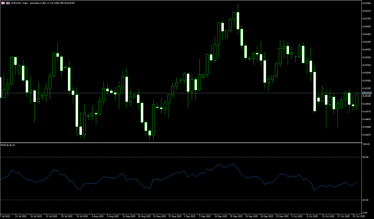 The Australian dollar (AUD/USD) remained under pressure around $0.6500 on Thursday as bets grew that the Reserve Bank of Australia (RBA) might cut interest rates in the near future. Recent data showed an unexpected rise in the unemployment rate to a near four-year high in September, pushing the market to price in a 70% probability of a 25 basis point rate cut, up from around 40% last week. Focus now shifts to upcoming economic data for signals on the central bank's November action, including this week's flash Purchasing Managers' Index data and next week's key third-quarter Consumer Price Index report. Meanwhile, the Australian dollar's downside may be limited following a breakthrough between US President Donald Trump and Australian Prime Minister Anthony Albanese, who signed a critical minerals agreement aimed at reducing dependence on China and potentially investing billions of dollars in local mining projects.