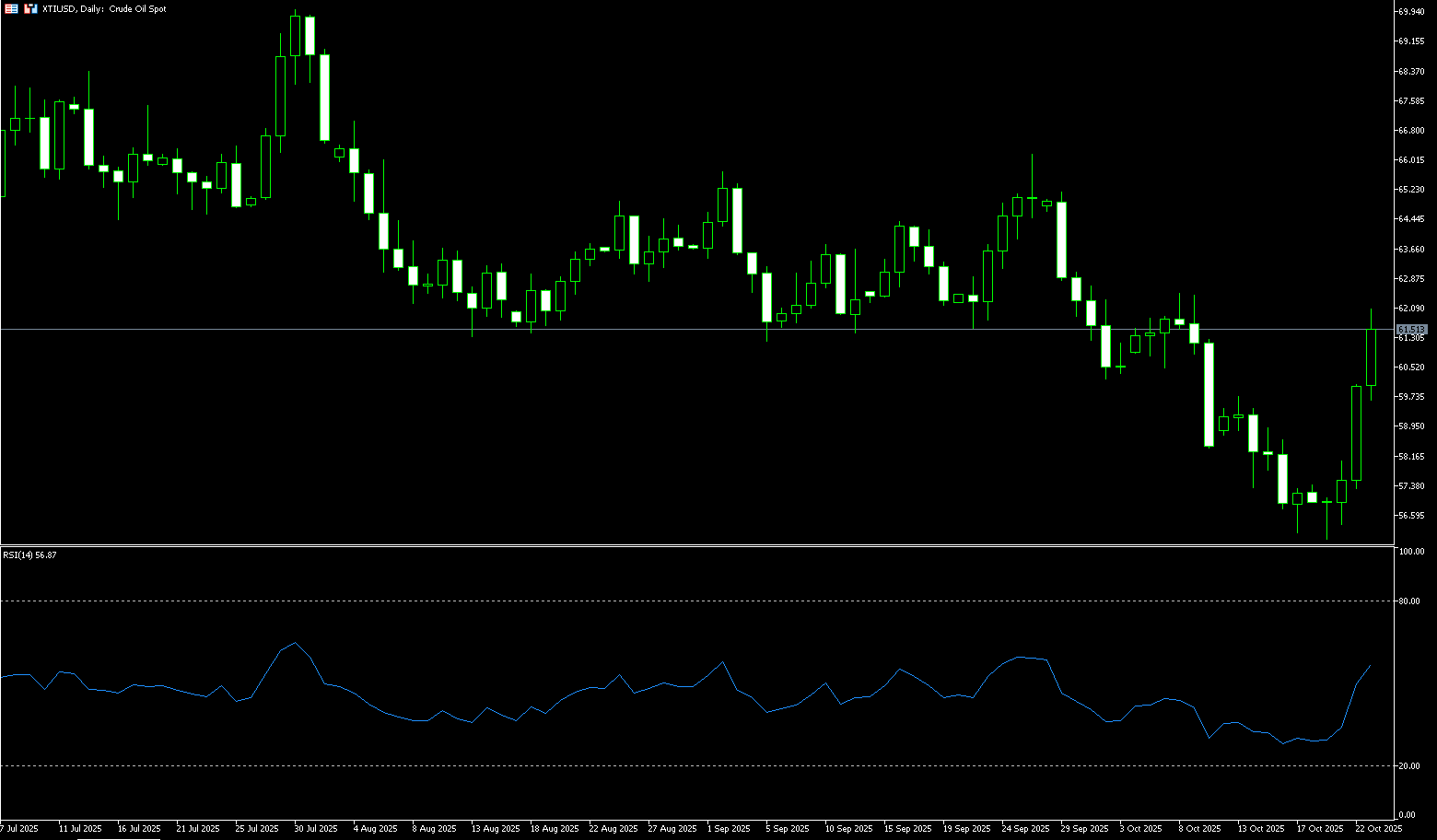 WTI crude oil rose over 4.5% on Thursday to over $61.50 per barrel, reaching a two-week high, after the United States announced sanctions on major Russian oil companies. These sanctions are intended to increase pressure on the Kremlin to fulfill its commitments regarding Ukraine. Rosneft and Lukoil, led by Putin ally Igor Sechin, together account for nearly half of Russia's oil exports, approximately 2.2 million barrels per day, and oil and gas revenues account for approximately a quarter of the federal budget. Following the sanctions, Trump stated he would pressure major buyers and planned to discuss Russian oil imports with Chinese President Xi Jinping next week, reiterating that India would reduce purchases. EU member states have approved their 19th round of sanctions against Russia, including a ban on Russian liquefied natural gas imports.